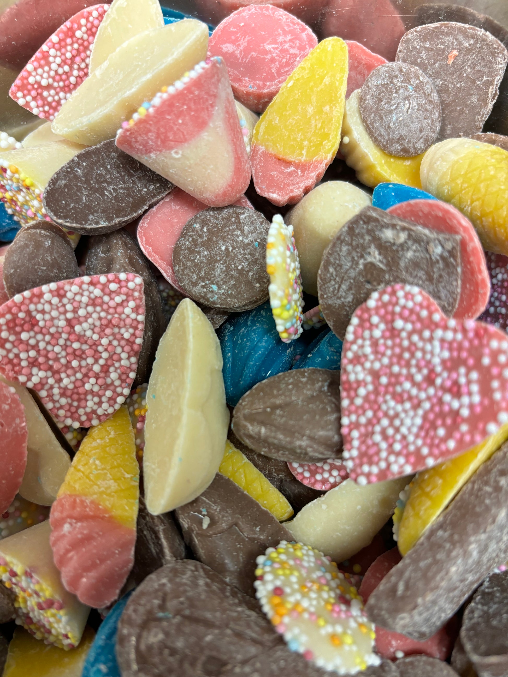 Jazzies, snowies, white mice, fish and chips…… a selection of the very best pick and mix chocolates